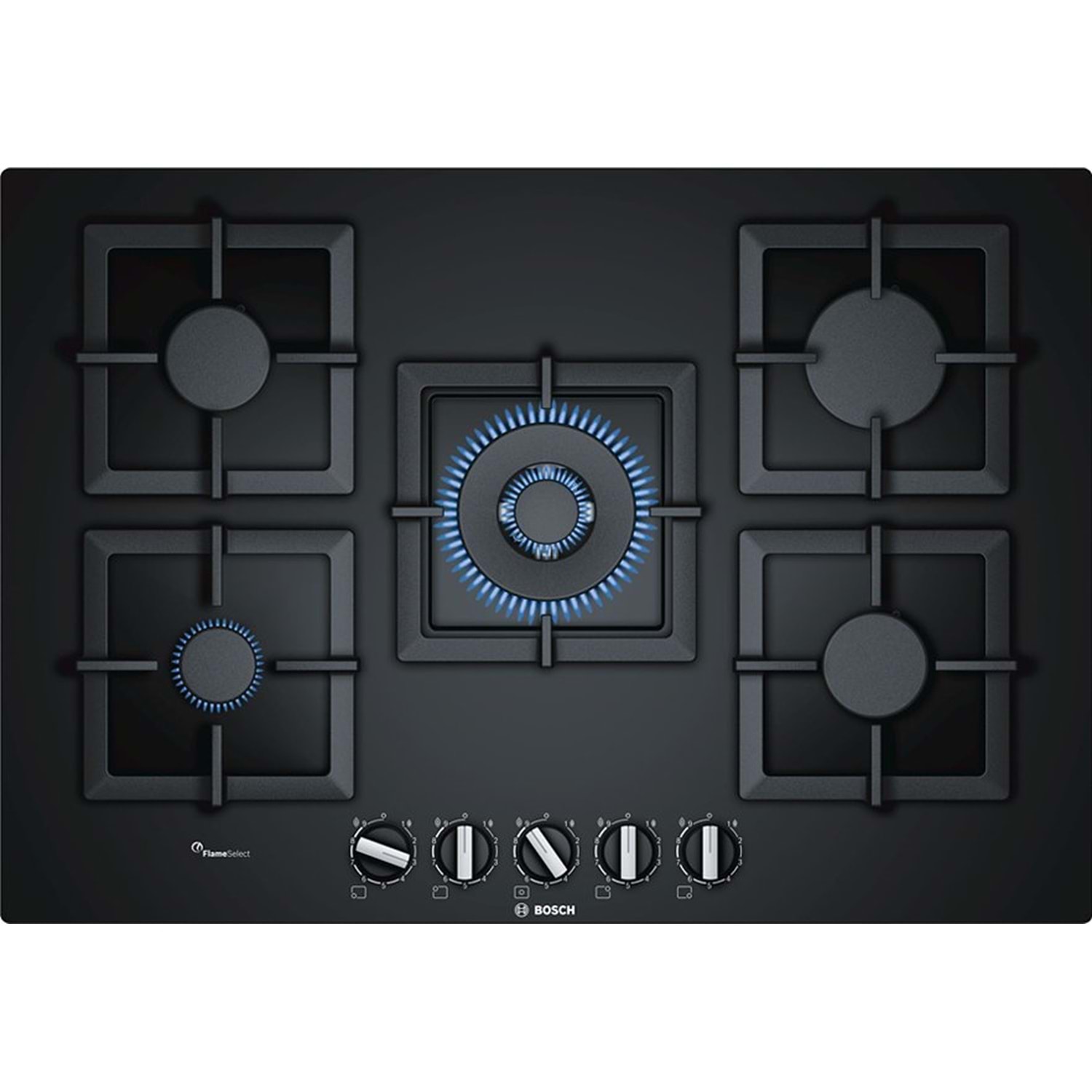 BOSCH PPQ7A6B20 SİYAH 5 GAZ 1WOK KALIN CAM OTOMATİK ATEŞLEME DÖKÜM DEMİR OCAK