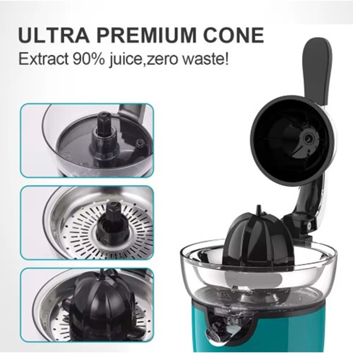 Sıkma Başlığı: 2 farklı başlık boyutu – büyük ve küçük narenciyeler için ideal