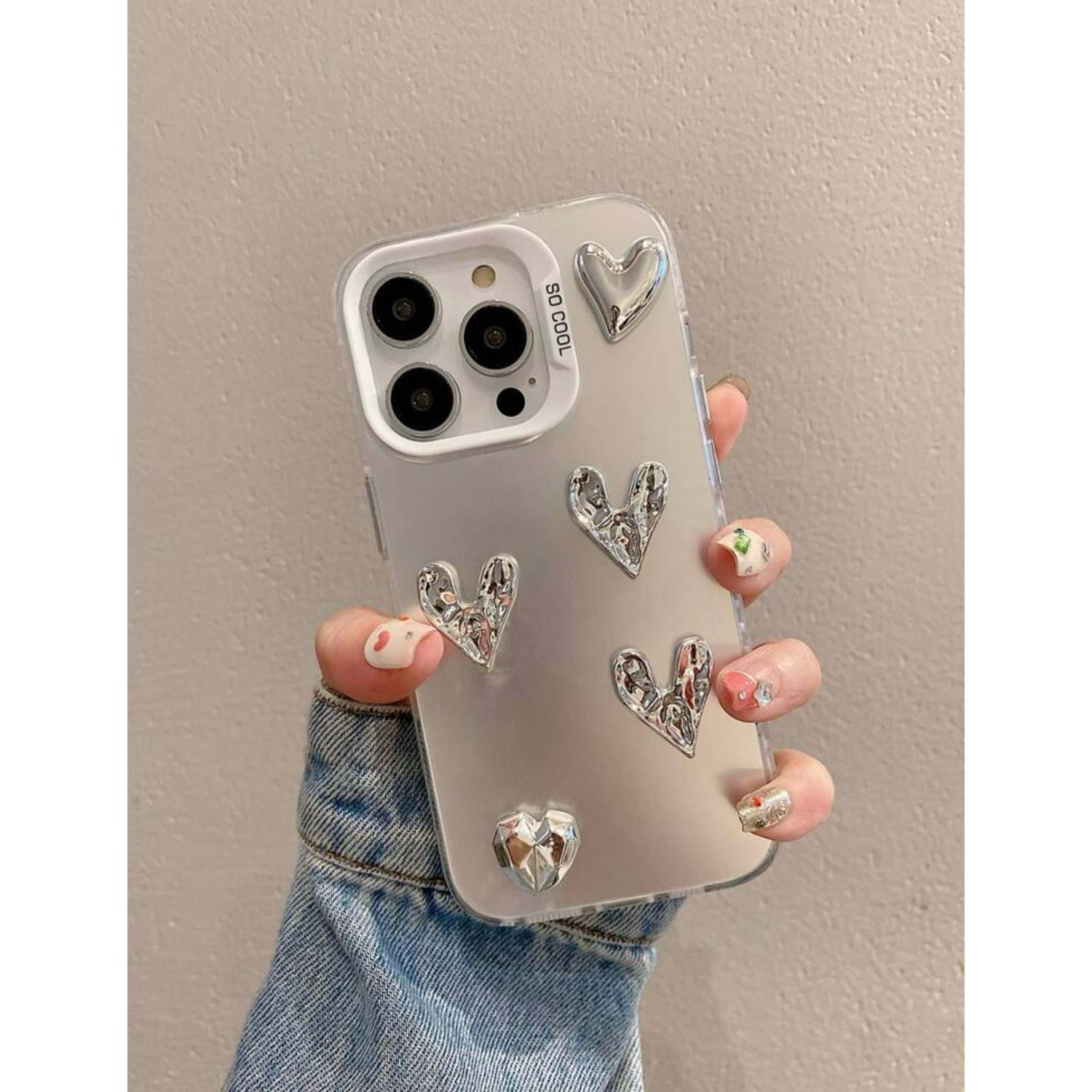 AYNALI ASİMETRİK KALP DİZAYN IPHONE 15 PRO KILIF