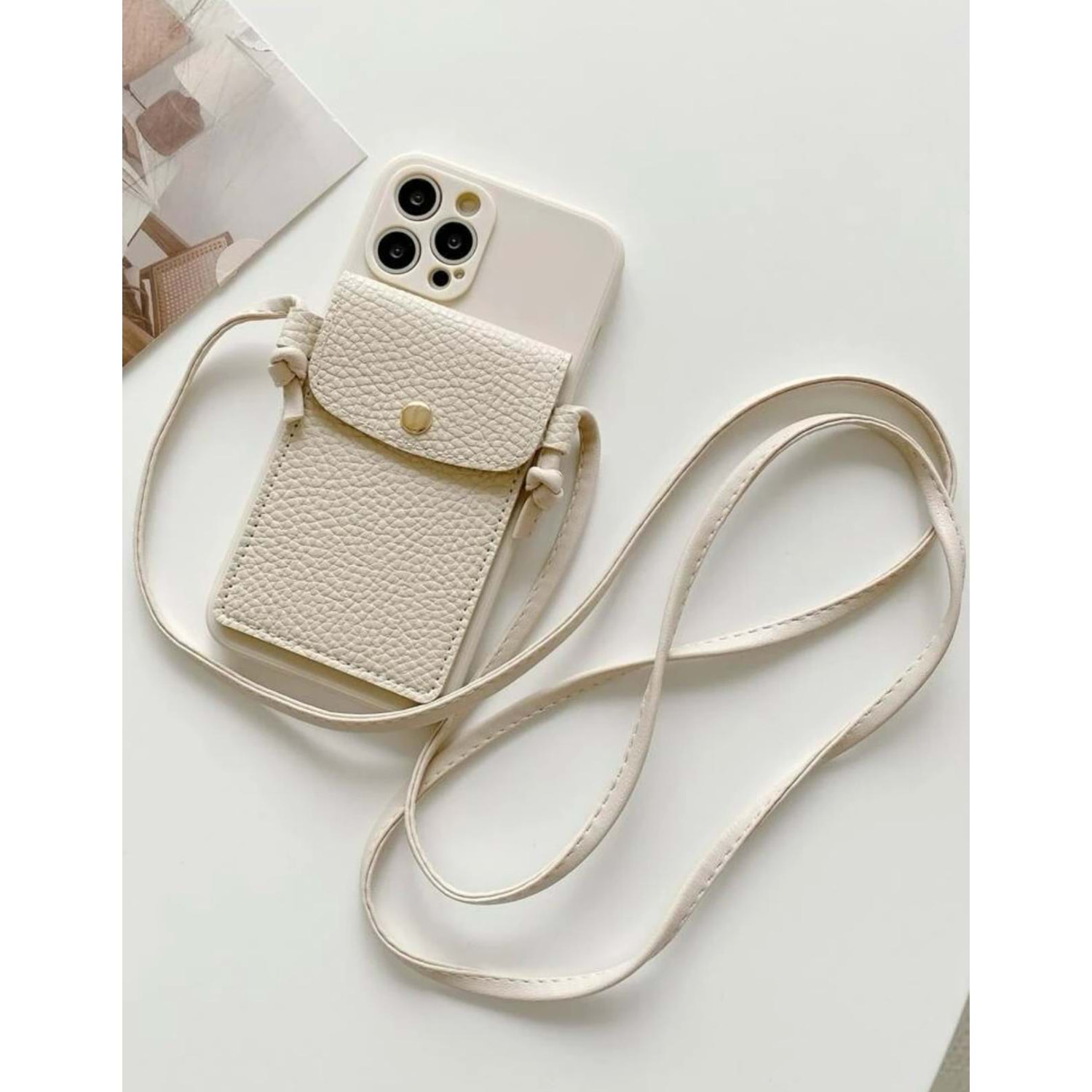 KREM LENS KORUMALI ÇANTA TASARIM IPHONE 15 PRO KILIF