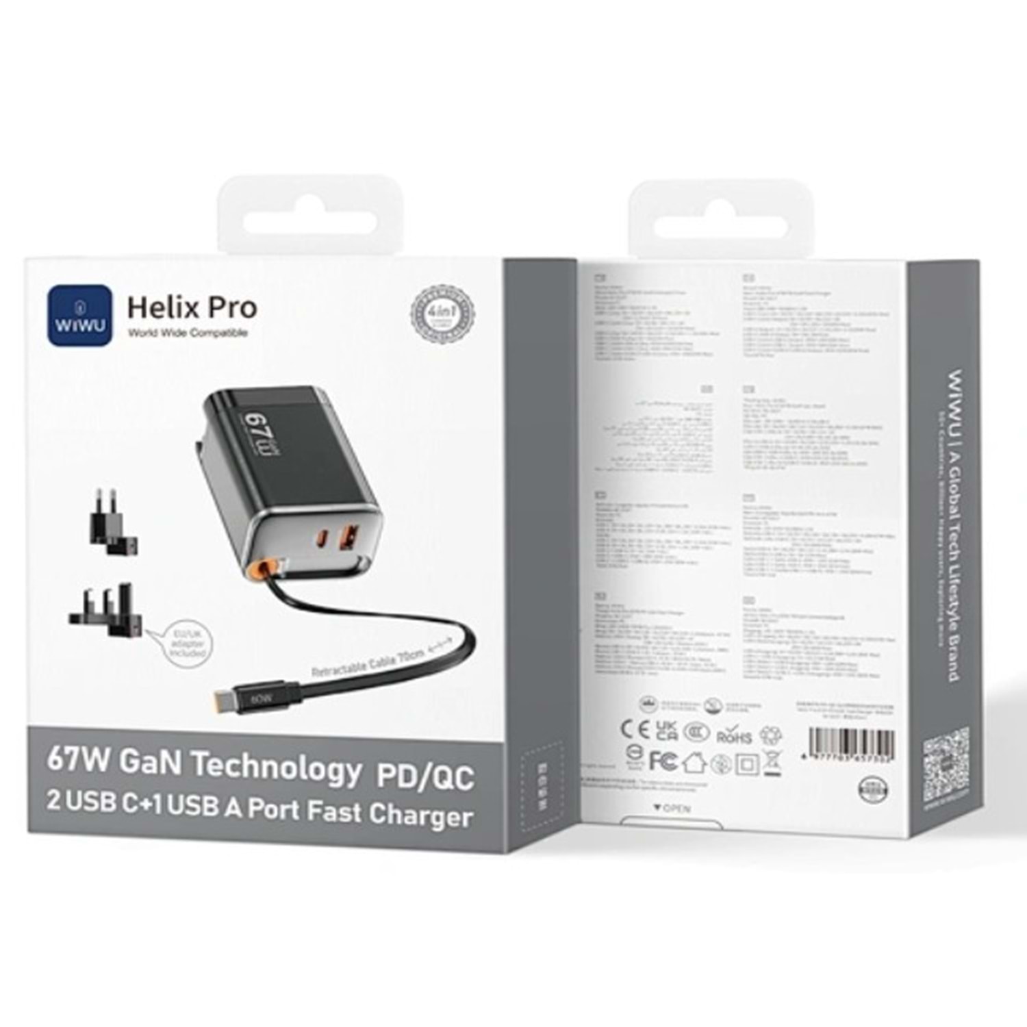 G027 WİWU HELİX PRO 67W GAN HIZLI ŞARJ PD/QC 2USB C+1 USB A